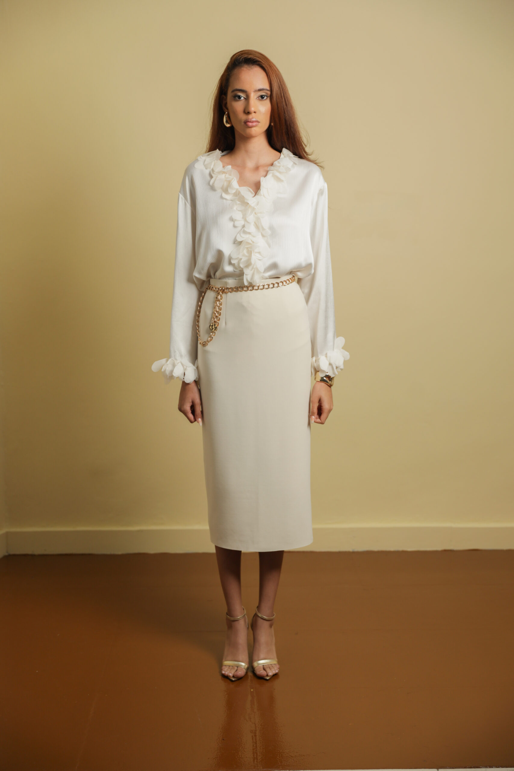 LONG SLEEVE SATIN BLOUSE WITH 3D PETALS