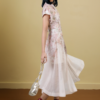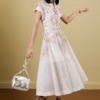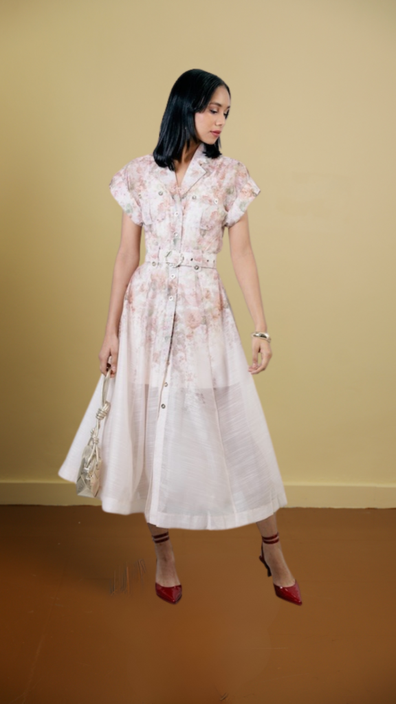 Organza Printed Midi Dress With Waist Belt