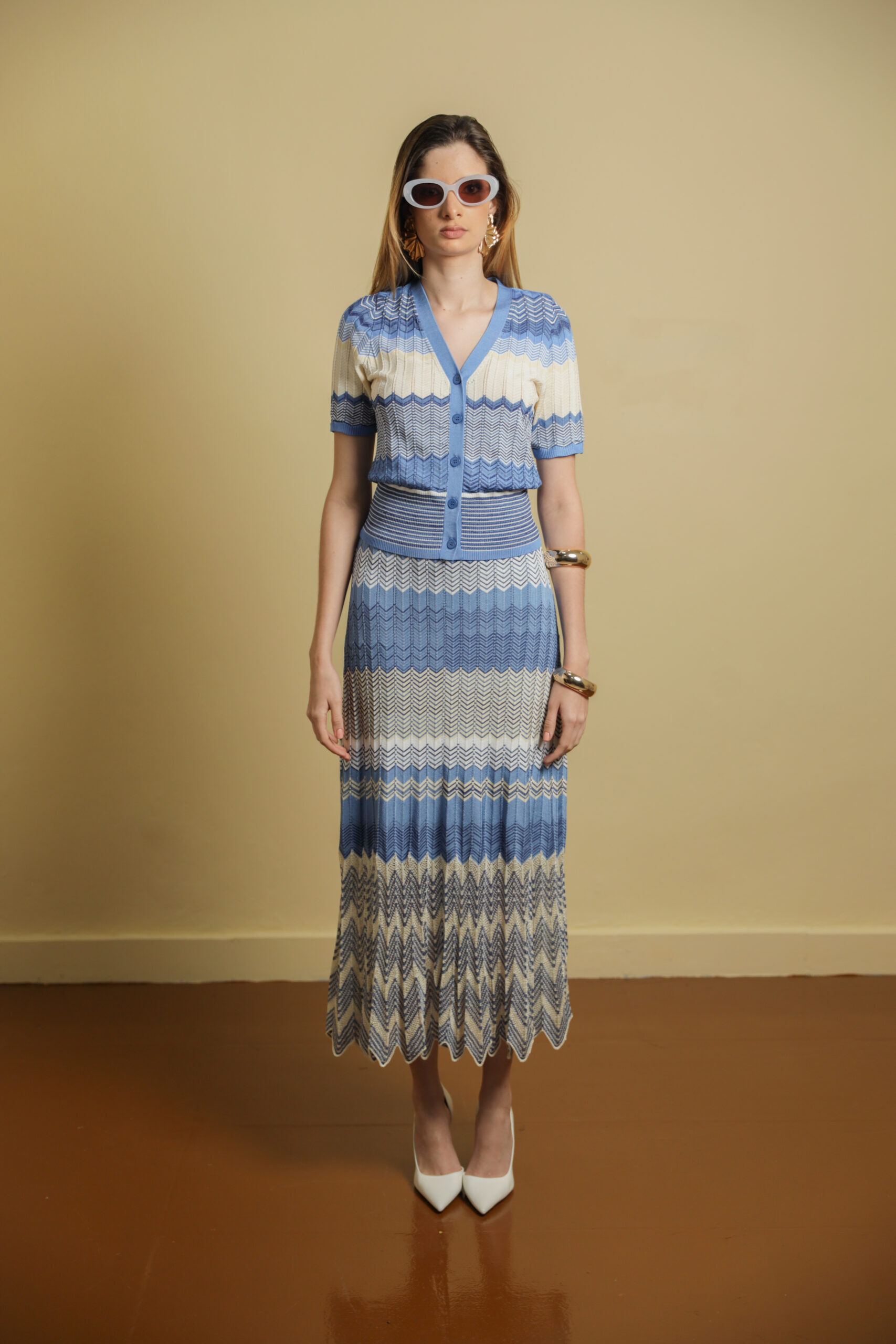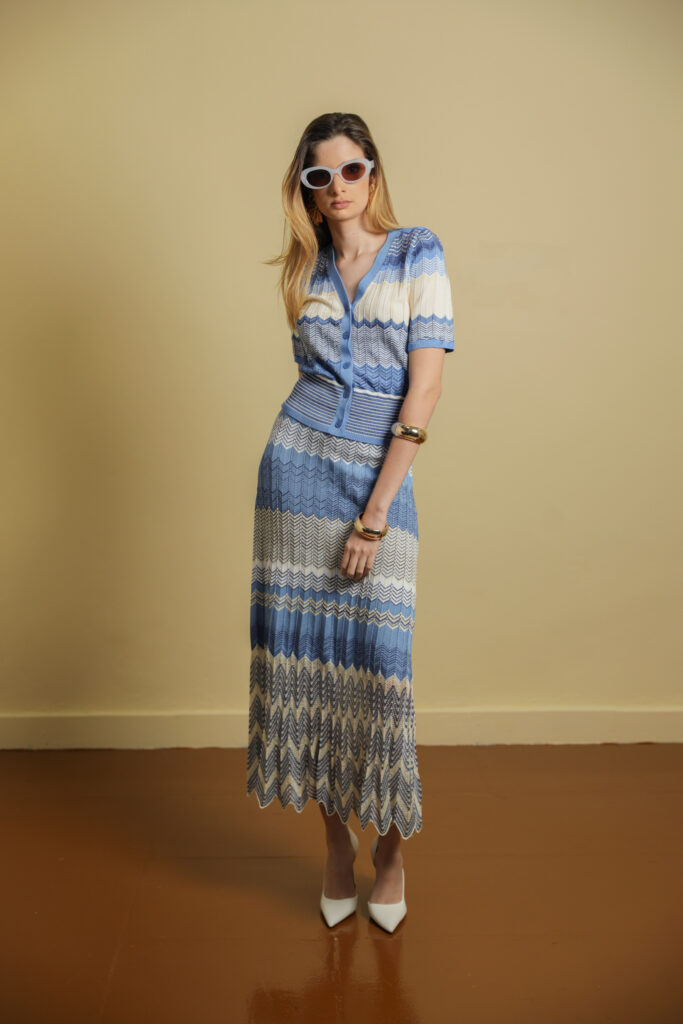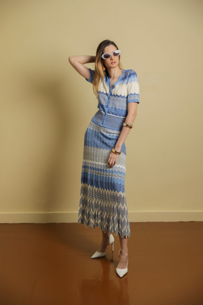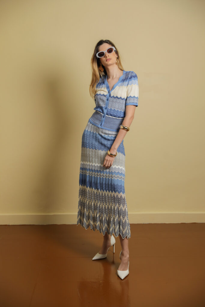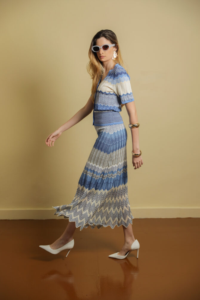 Striped Knitted Midi Skirt